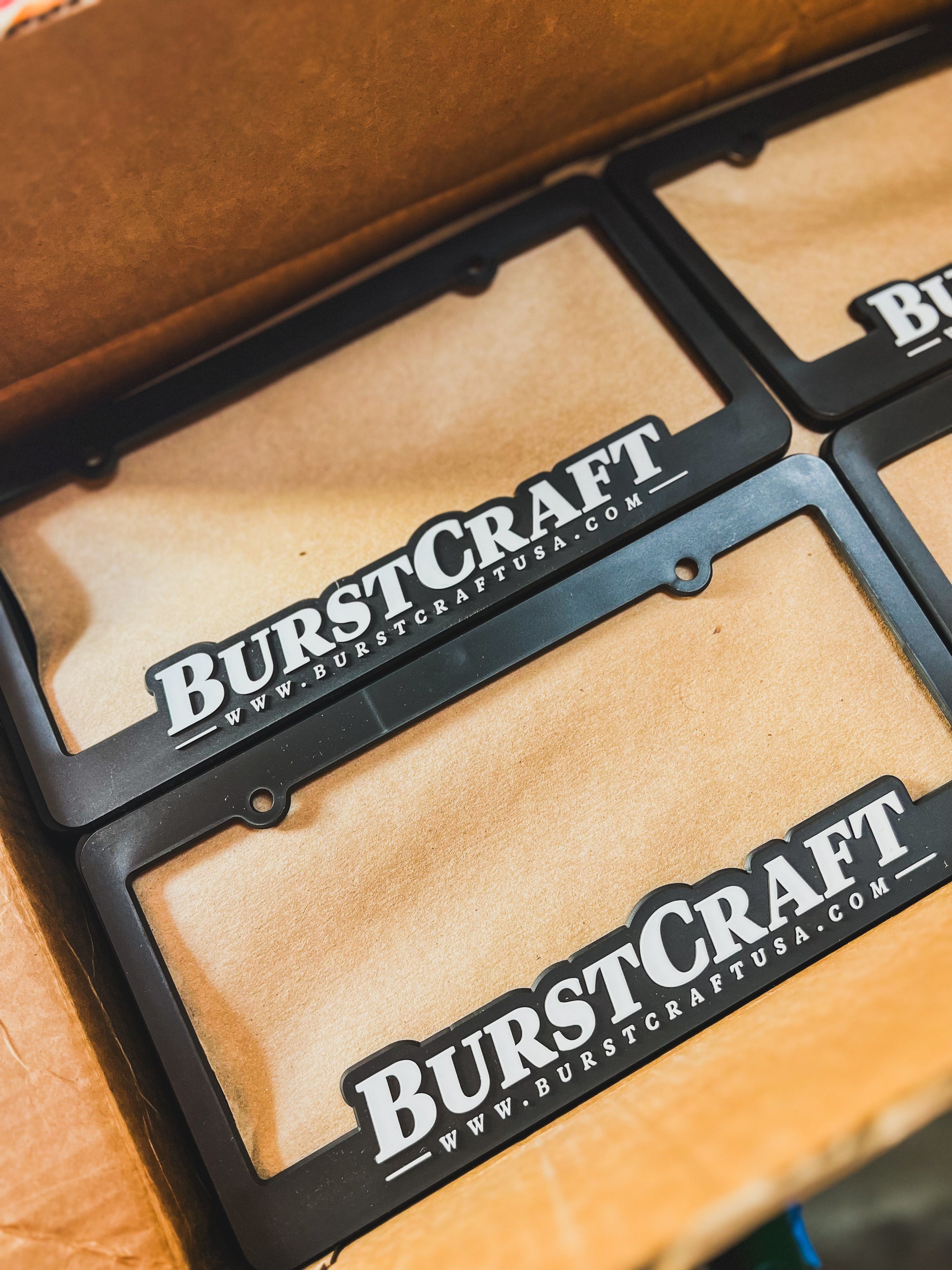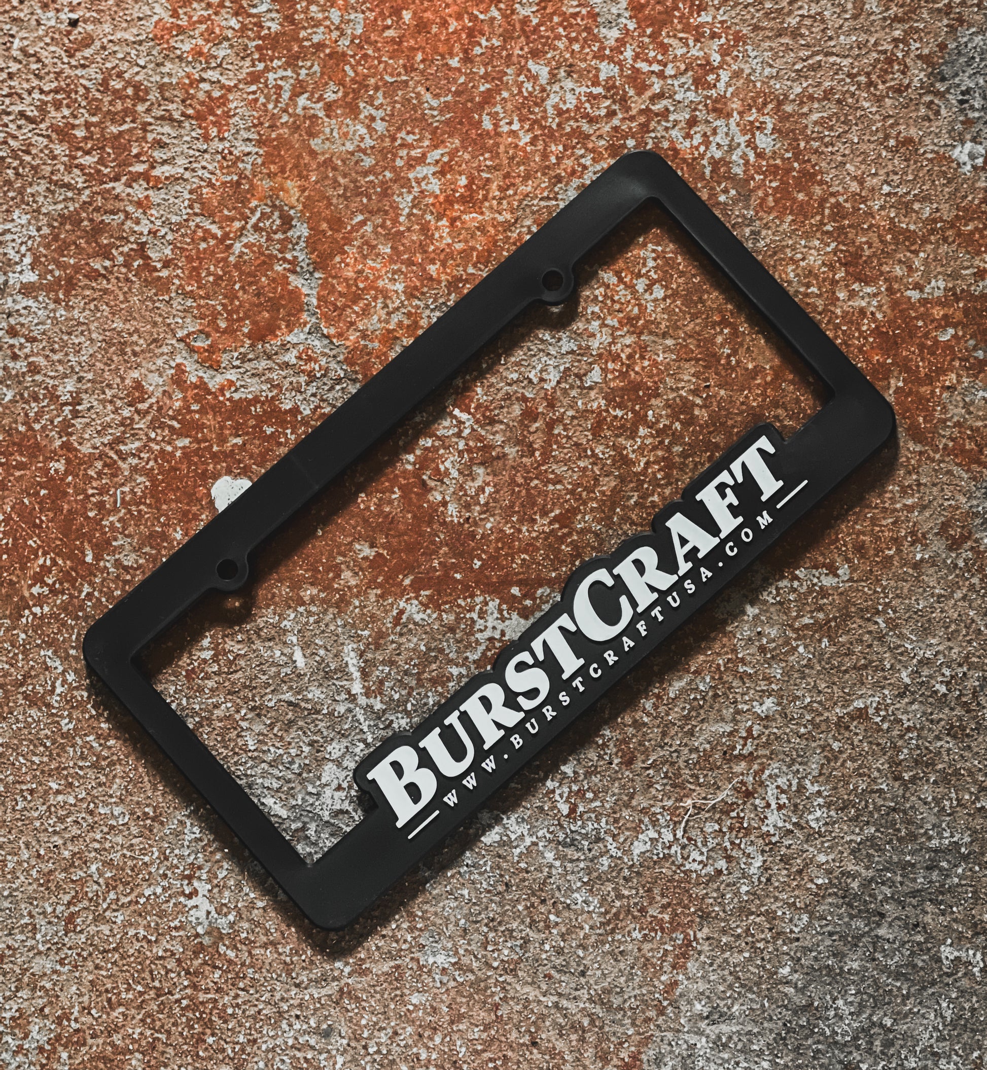 Represent Burst Craft with a high quality plate frame! Raised, vibrant white lettering with a black plastic frame. Also has two tabs to help retain your plate within the frame itself.