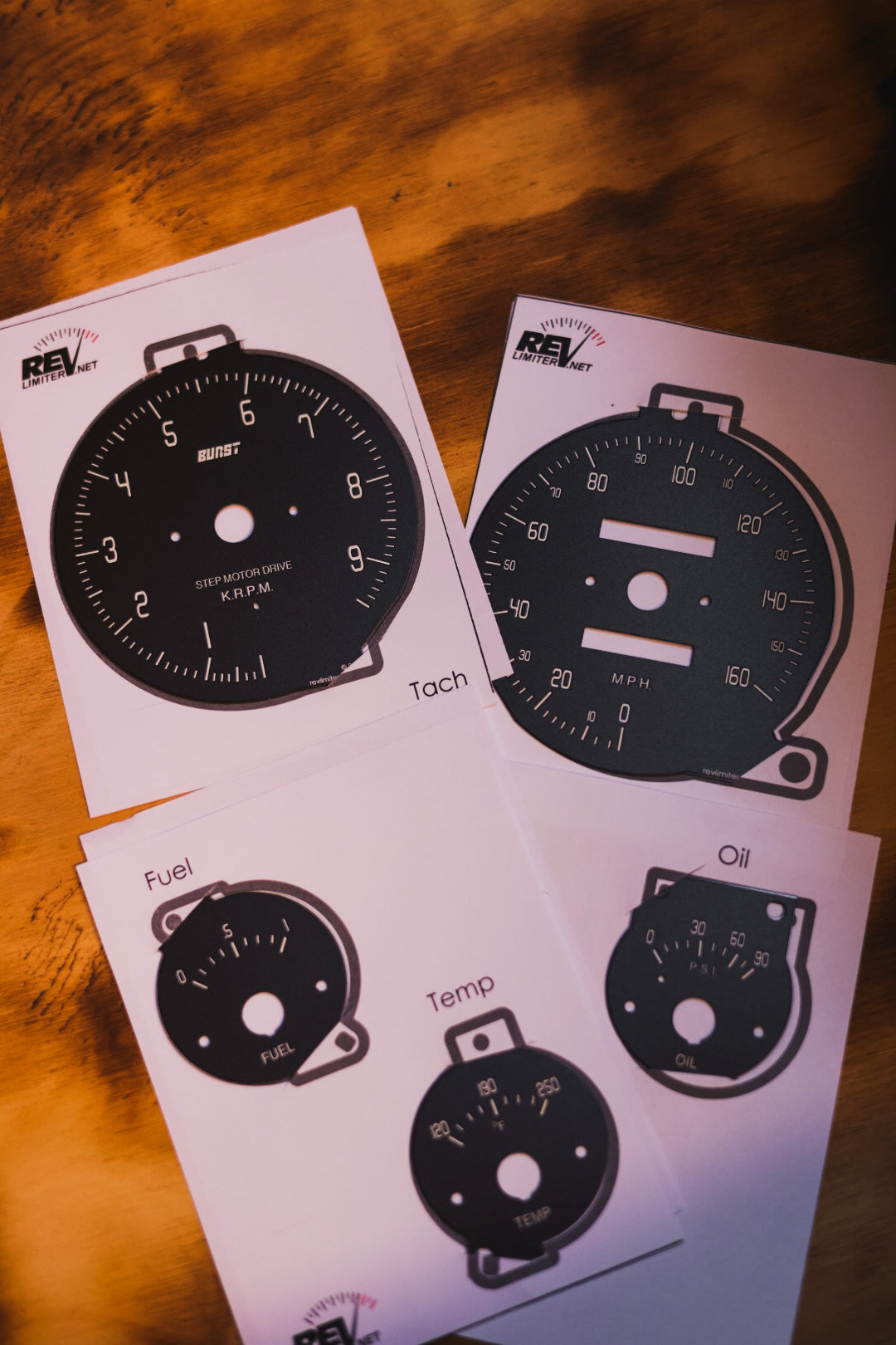 Produced by RevLimiter to Burst Craft's artistic requirements, the "Ultra" gauge faces take inspiration from the famous Ultra step motor tachometers without all the hassle of installing an aftermarket gauge!