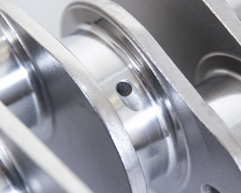 Eagle Billet 4340 steel crankshafts feature .125" fillet radiuses for superior strength so chamfered / narrowed bearings required, nitrided surface and micropolished.