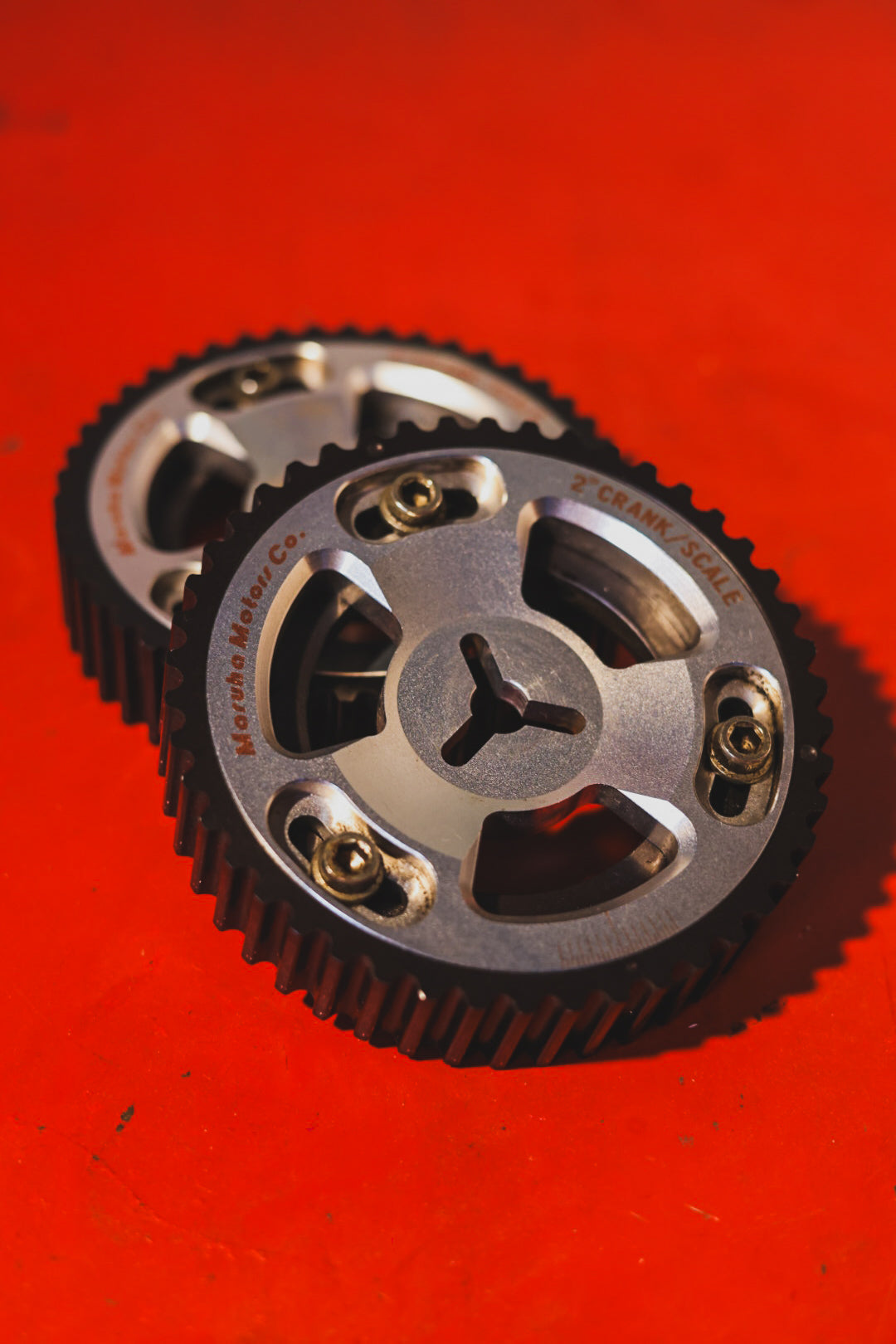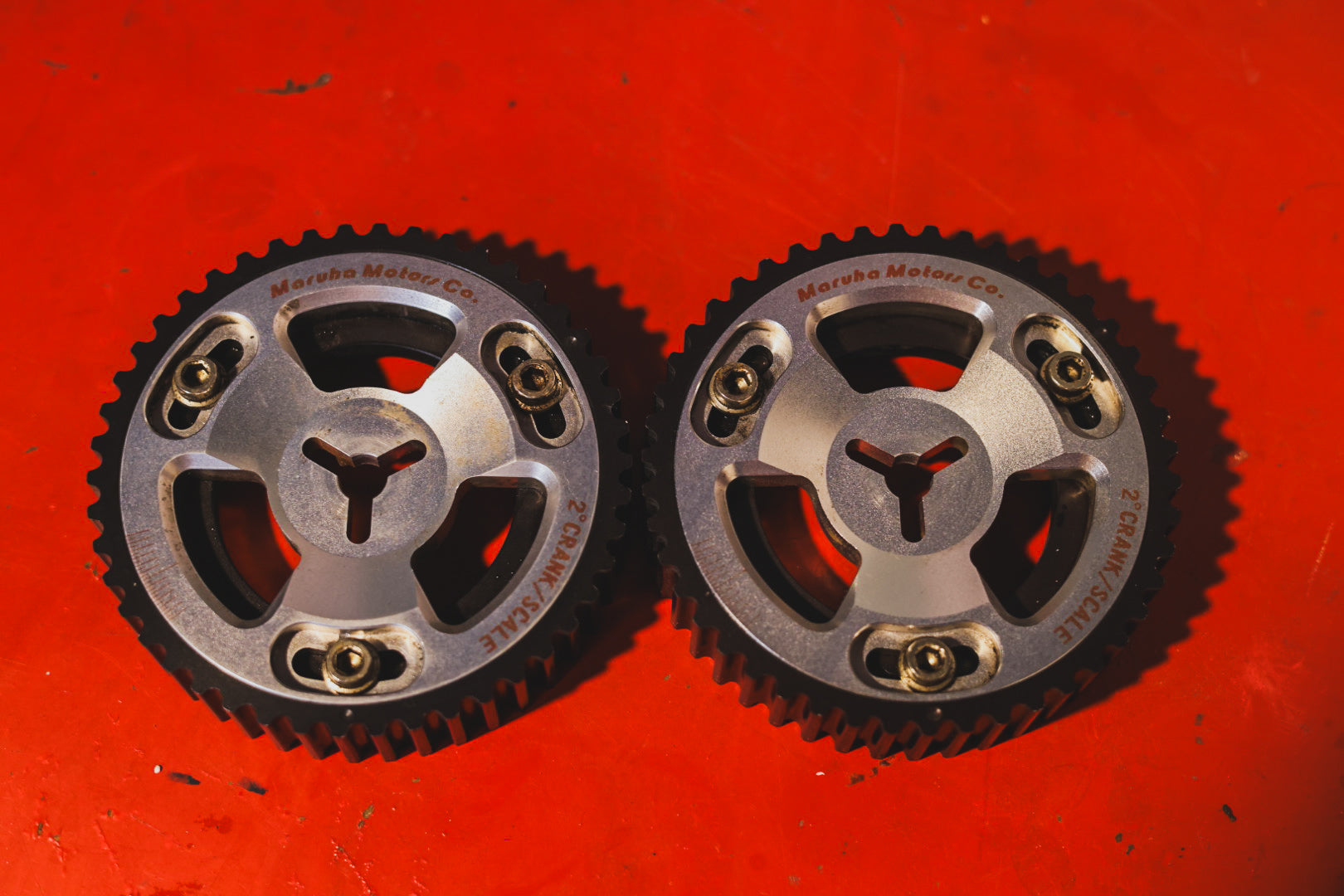 Used gold anodized Maruha adjustable cam gears. Compatible for 1.6L and 1.8L Miata.